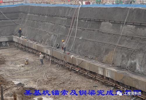 支护桩施工-冠梁施工-基坑土方开挖-锚索施工-腰梁施工-锚索张拉试验-上锚具,夹具。(灌注桩排桩施工)适用于深基坑。