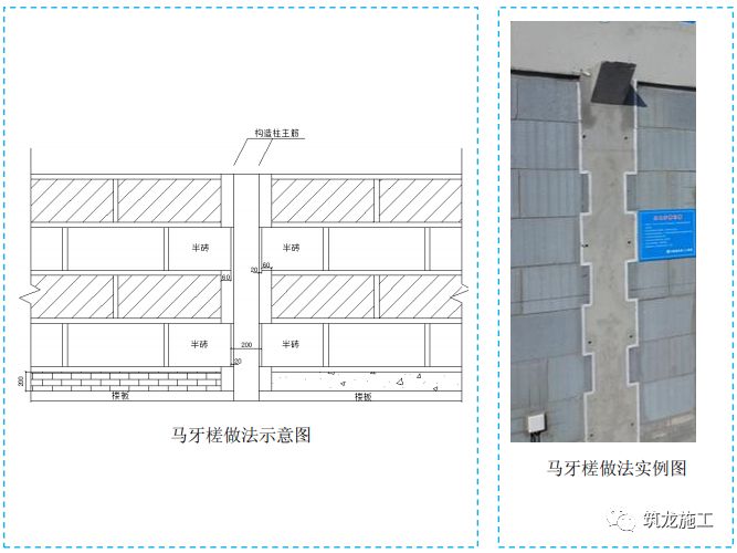 1、填充墙构造柱两侧应砌成马牙槎,马牙槎凹凸尺寸不宜小于60mm,高度不宜超过300mm,马牙槎应先退后进,对称砌筑。