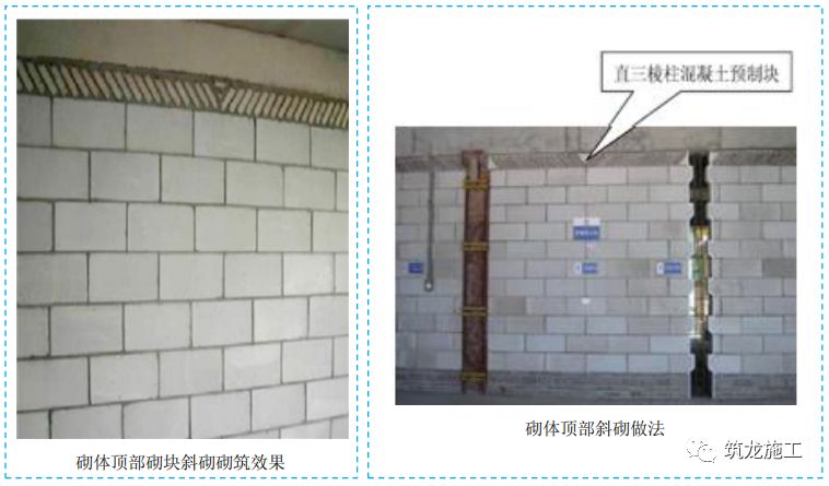1、砌筑墙体顶部一律采用小实心砌块斜砌施工,斜砌角度为30-60。