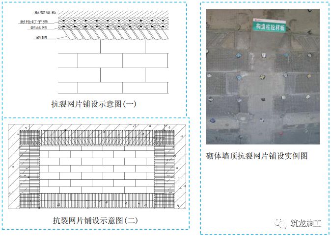 1、砌体墙顶与梁底连接处、砌体墙侧面与混凝土柱连接处必须铺设抗裂网,两边搭接不小于规范要求,以 200~300mm 为宜。