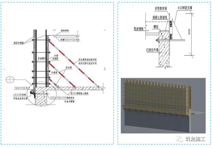 1、为防止接茬部位墙体涨模,在下层墙体间隔500mm设置一道对拉螺栓。