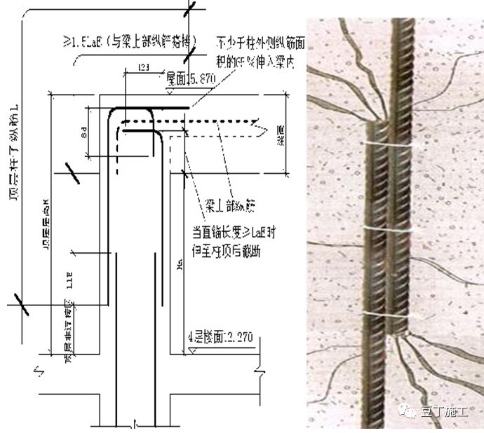 4、钢筋接头搭接处,应在中心和两端用铁丝扎牢;绑扎接头的搭接长度应符合设计要求且不得小于规范规定的最小搭接长度(受拉钢筋300mm,受压钢筋200mm)。5、涉及封头钢筋的连接接头需定尺加工,防止出现锚固不足或过长现象。