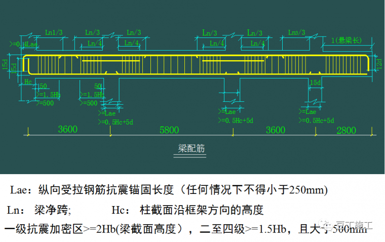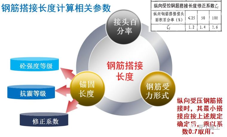 钢筋的锚固长度、搭接长度、接头位置、弯钩朝向;
