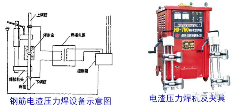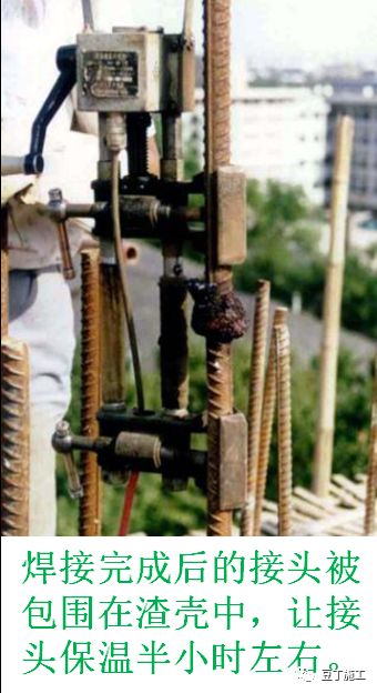 电渣压力焊(简称竖焊)是利用电流通过渣池产生的电阻热将钢筋端部熔化,再施加压力使钢筋焊合。该工艺多用于施工现场直径12~40mm的竖向或斜向(倾斜度4:1)钢筋的焊接接长。