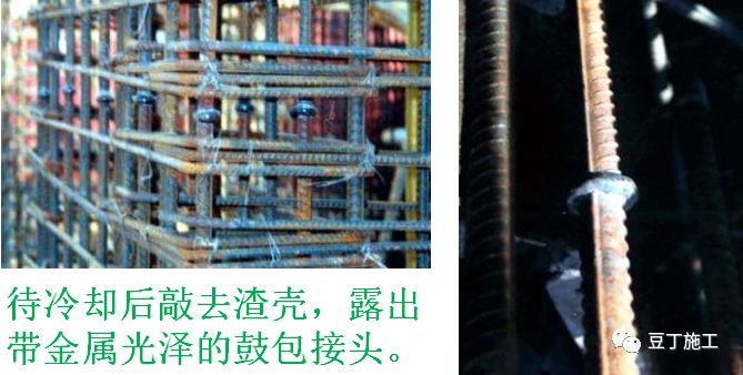 外观检查:电渣压力焊接头应逐个进行,要求接头焊包均匀、突出部分高出钢筋表面4mm,不得有裂纹和明显的烧伤缺陷;接头处钢筋轴线偏离不超过0.1d,且不大于2mm;接头处的弯折角不得大于3度