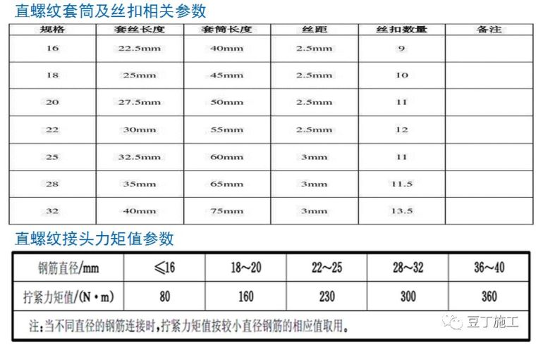 直螺纹套筒连接能在现场连接14~40mm的同径、异径的竖向、水平或任何倾角的钢筋,不得用于预应力钢筋或承受反复动荷载及高应力疲劳荷载的结构。