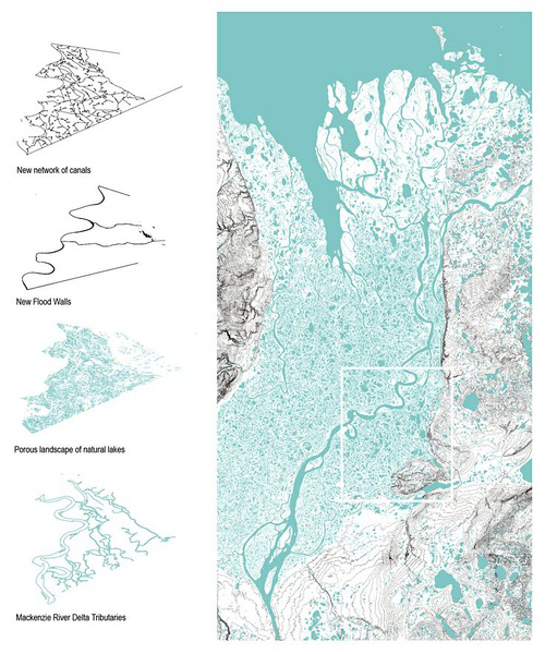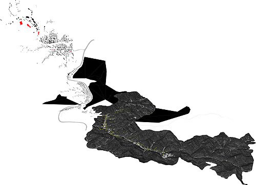 如果你的建筑方案刚好也是一个类似的方向,或表达的是城市附近的山山水水,那么一定要选择一张图来表达城市与山路之间的关系,像下图那样: