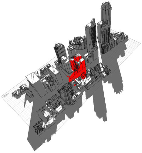 除了说太阳也可以说影子,尤其是城市空间中。阴影集中的地方是需要着重考虑采光的地方,所以影子地图在场地分析中也是香饽饽: