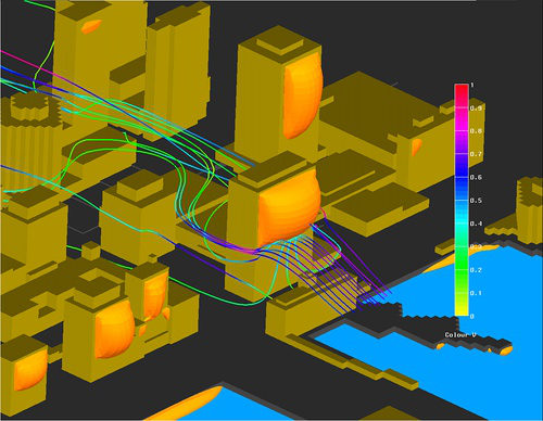 除了采光,建筑中的通风情况也是需要考虑的内容,熟悉微气候分析软件的同学不要放过机会,气流的分析图在留学作品集中比较少见,表现出来会有效加大竞争力:
