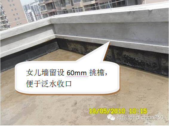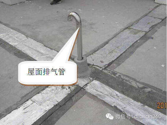 1、平屋面必须做成排气屋面,整体找坡≮2%,女儿墙、造型柱、排烟道等部位结构施工时要求统一挑出60mm宽挑檐(不得再留置凹槽,包括单元门及机房屋面),泛水收口全部置于挑檐下,严禁出现朝天缝。排气管设置在屋面找坡的最高处,要求必须使用不锈钢管,直径为75mm,其出屋面高度控制在500~600mm左右,排气管端部焊接圆弧弯头,根部设砼圆台,圆台直径和高度均控制200~250mm左右。