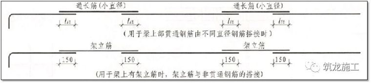 梁上部不同直径通长筋搭接长度设置(16G101-1 P84)