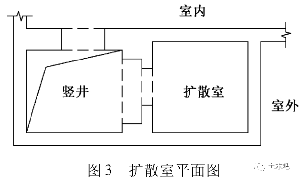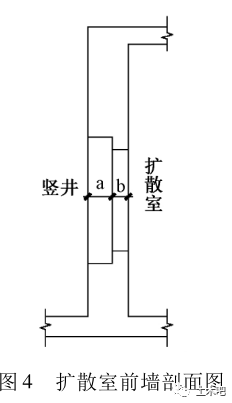 扩散室前墙为竖井与扩散室之间的墙体,其承受从竖井传来的临空墙荷载。因此墙体中最薄的部分( 图中标注为 b) 应该满足该条要求。