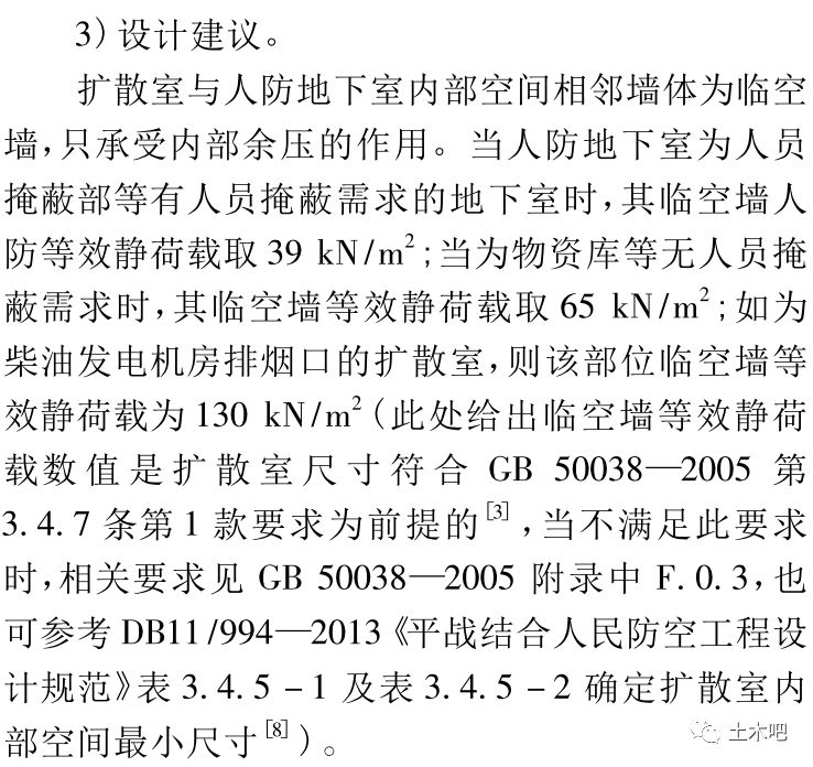 未考虑扩散室余压的适用条件 ( 针对不同的门,不同的扩散室大小) ,只要是扩散室均按照上述2. 1 节设计建议中等效静荷载取值。常见情况为建筑在甲类 6 级人防地下室选择 HK 系列人防门。