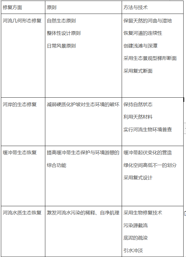 通过研究与实践,总结出一系列恢复河流生物栖息的策略。包括(1)柔化岸线(2)培育湿地(3)建设生态边沟(4)局部设置生物繁衍区(5)配置生物取食生活区,通过上述方法完成河道的生物栖息地重建功能。