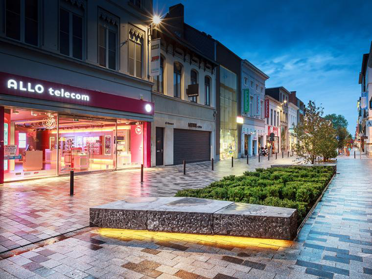 路面铺装的材质、色彩在设计中的合理应用和规划,作为一种景观,可以美化商业街的步行环境,为商业街的整体气氛增色添彩,使购物者拥有轻松、自在、休闲的购物气氛。