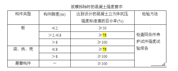 3.钢筋混凝土结构如在混凝土未达到上述所规定的强度时进行拆模及承受部分荷载,应经过计算,复核结构在实际荷载作用下的强度。