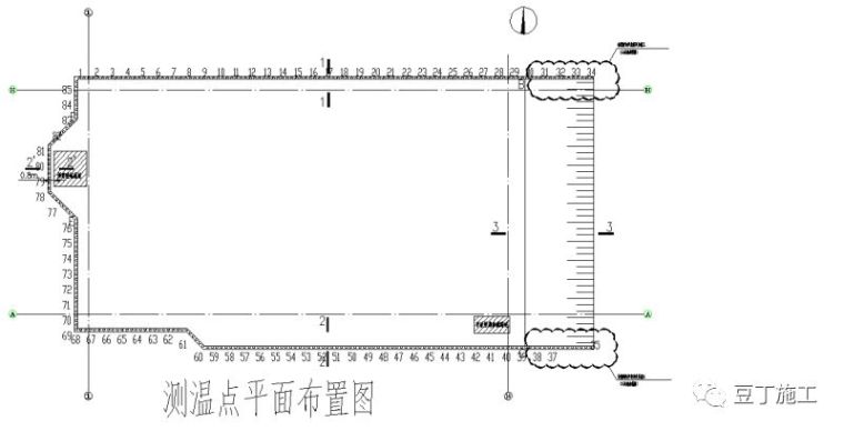 本工程使用电子测温仪测温。混凝土浇筑前将电子测温导线用胶布固定于一根钢筋上,然后小心将钢筋与浇筑部位钢筋网绑扎牢预,布点结束后,检查各传感器是否完好,如有损坏,应更换。浇筑后利用电子测温仪配合预埋测温导线进行混凝土温度测量。