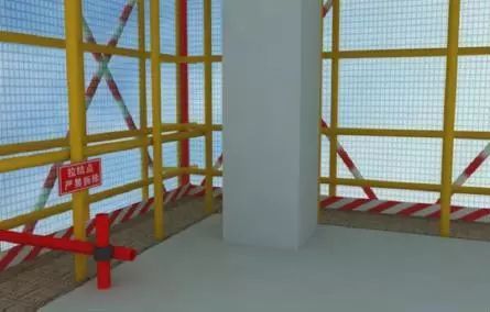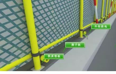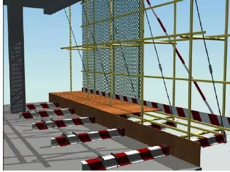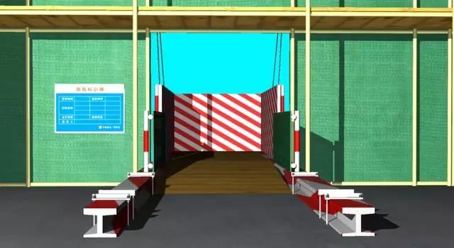 (3)设置不低于1.5m的防护栏杆,栏杆内侧设置硬质材料的挡板并刷红白警示漆,卸料平台应做限载标识牌;