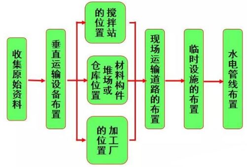 贰确定搅拌站、加工棚和材料、构件堆场的位置,应尽量靠近使用地点或在起重机能力范围。