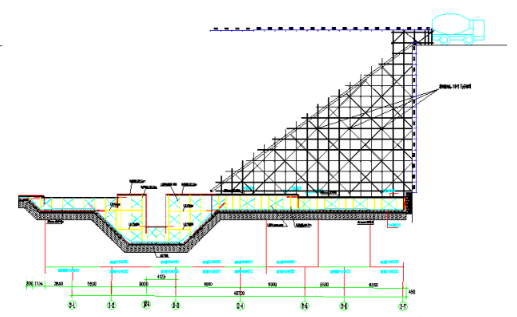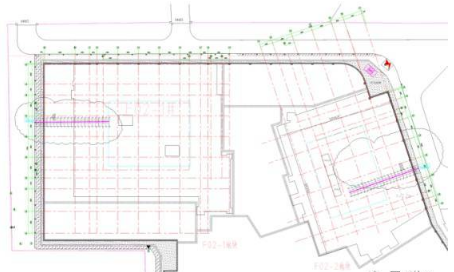 地泵及汽车泵位置(详见大体积混凝土施工方案)溜槽位置计划安装在F02-1#地块基坑西侧与F02-2#地块基坑东侧位置,以方便混凝土罐车进行自卸。