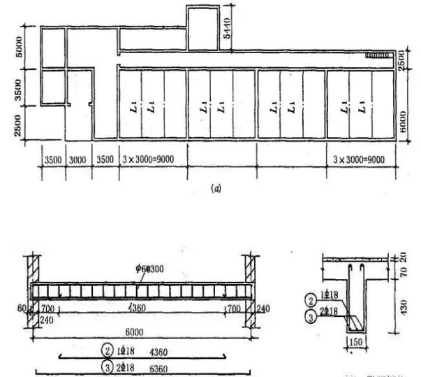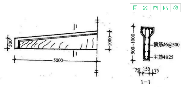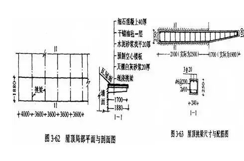 2)屋顶层的挑梁尺寸与配筋情况见图3-63,混凝土C18,在拆模时发现7根挑梁根部断裂。