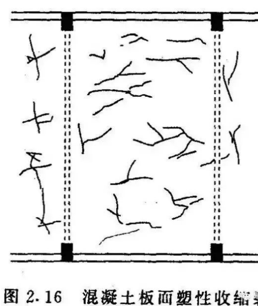 某办公楼为现浇钢筋混凝土框架结构。在达到预定混凝土强度拆除楼板模板时,发现板上有无数走向不规则的微细裂纹,如图2.16所示。裂缝宽0.05~0.15mm,有时上下贯通,但其总体特征是板上裂纹多于板下裂纹 。