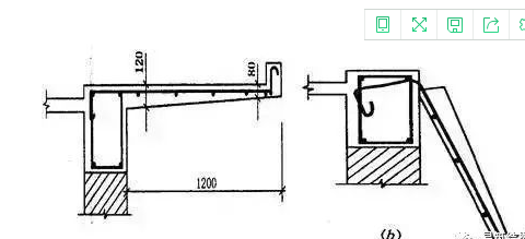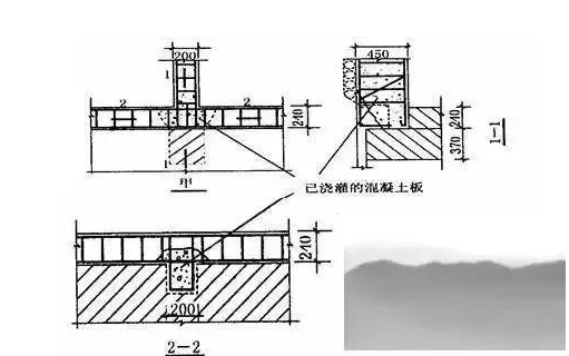 1)将墙上残剩的挑梁根部打掉500mm,露出全部钢筋。