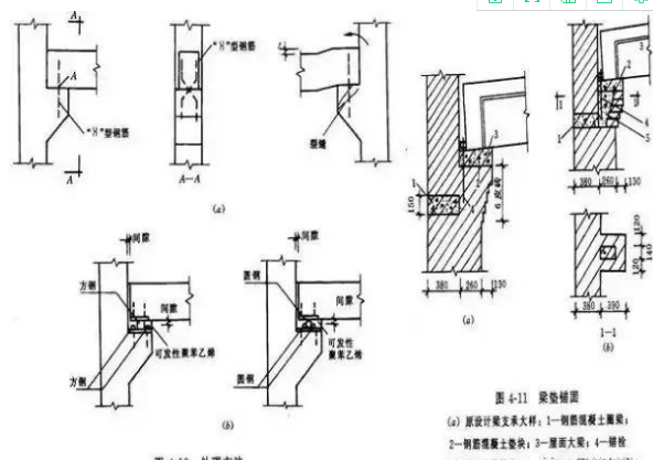 4)将梁端混凝土用工小心地凿成如图2.27乙所示形状,并将部分预制楼板,以加强梁端的抗剪能力。