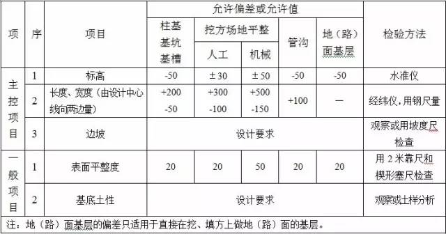 基槽开挖的验收标准为: