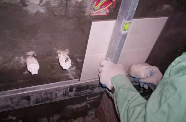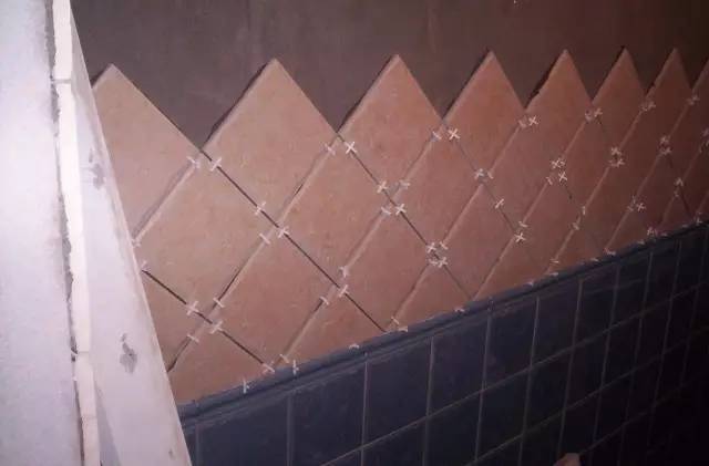 施工要点2:瓷砖铺贴是技术活,一般到了这个阶段的施工,应让有多年经验的老师傅来进行。铺贴的平整度、水泥配比、瓷砖的间隙、配色,都很有讲究。