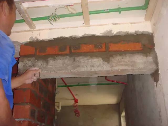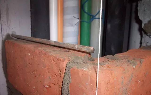 施工要点4:观察仔细的读者会发现,未成形的墙体上方,会吊着数根细线。这是用来保证墙面主缝垂直的。此外,新砌隔墙与老墙连接处施工要配筋拉结,以达到抗震效果!