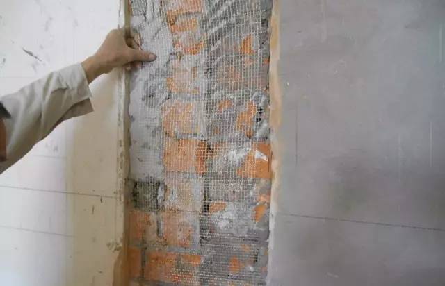 施工要点9:砌墙时,算厚度一定要注意外墙新墙粉刷后一定要比老墙凹进去1~2公分,等晾干后再上面上一层石膏板,再留3毫米左右在上面刮石膏或者腻子以及网格布。