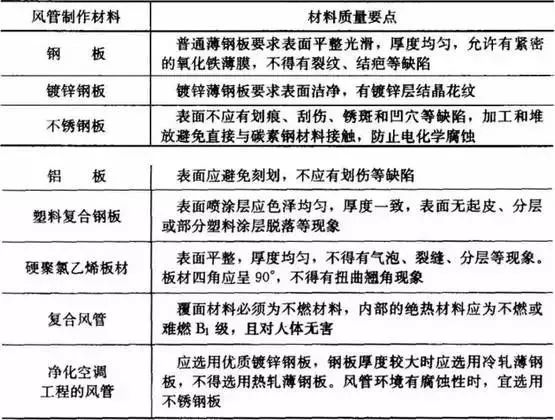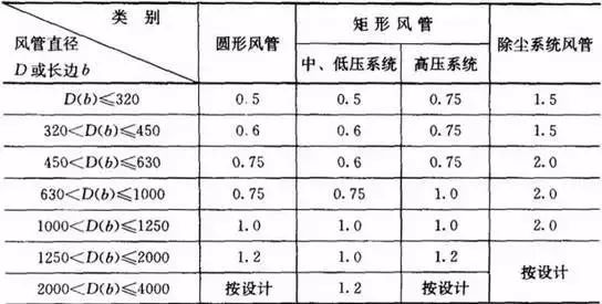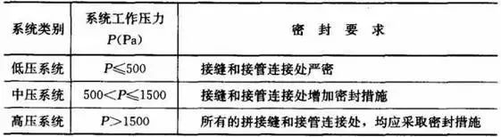 高压风管、中压风管、低压风管三个类别,具体划分如表所示: