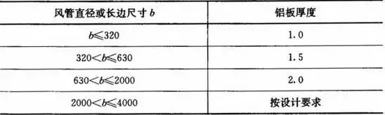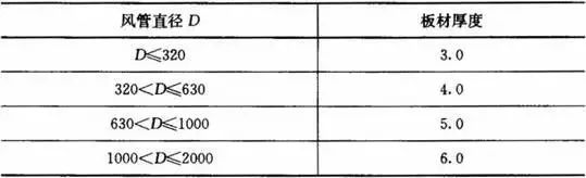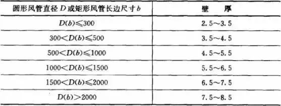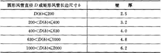注:1、螺旋风管的钢板厚度可以适当减小10%~15%;