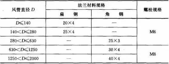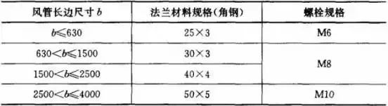(3)当采用加固方法提高了风管法兰部位的强度时,其法兰材料规格相应的使用条件可以适当放宽。