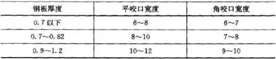 2、金属风管咬口宽度和预留量根据板厚确定,应符合以下要求:
