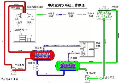 在冷水环路中,驱动水进行循环流动的装置。我们知道,空调房间内的末端(如风机盘管,空气处理机组等)需要冷水机组提供的冷水,但是冷水由于阻力的限制不会自然流动,这就需要水泵驱动冷水进行循环以达到换热的目的。
