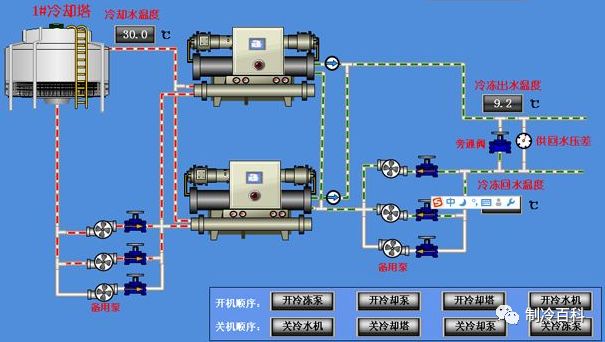 一般,冷水泵和冷却水泵的台数应和制冷主机一一对应,并考虑一台备用。补水泵一般按照一用一备的原则选取,以保证系统可靠的补水。