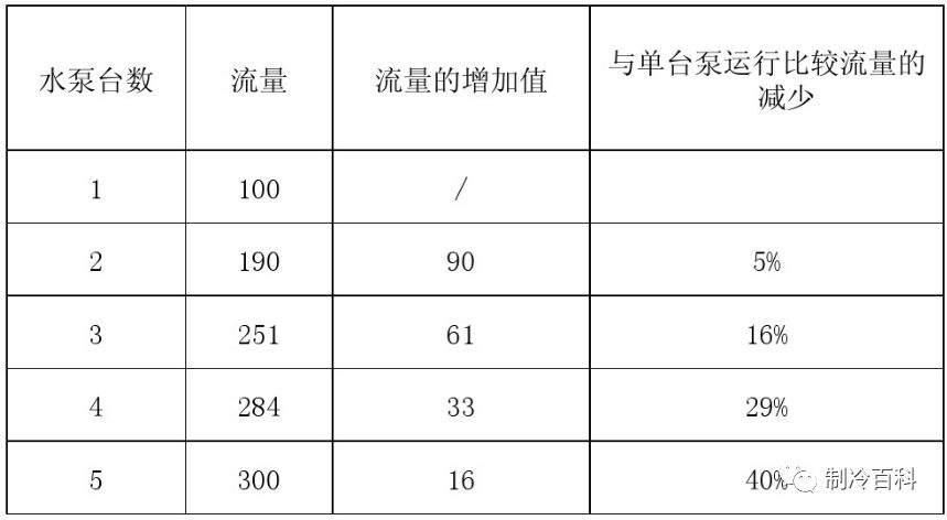 水泵并联运行时,流量有所衰减;当并联台数超过3台时,衰减尤为厉害。故建议: