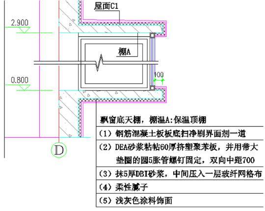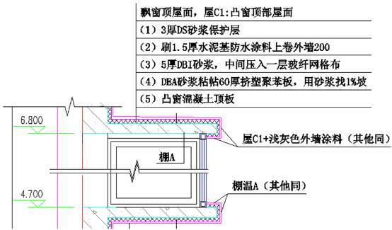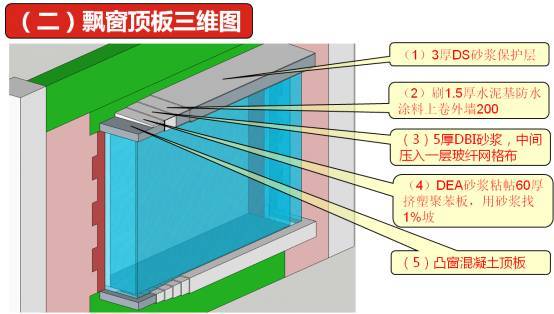上图是飘窗底板的装修做法,从图中我们可以看出,包括了5层装修量。