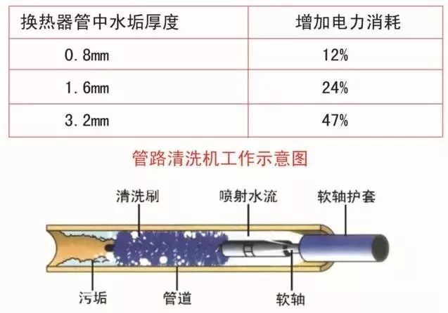 制冷机组很多采用水冷式的,水冷冷凝器内部管壁很容易结水垢,这些水垢会影响换热效果,导致机组的冷凝温度升高,进而导致制冷量降低、机组电耗增加。