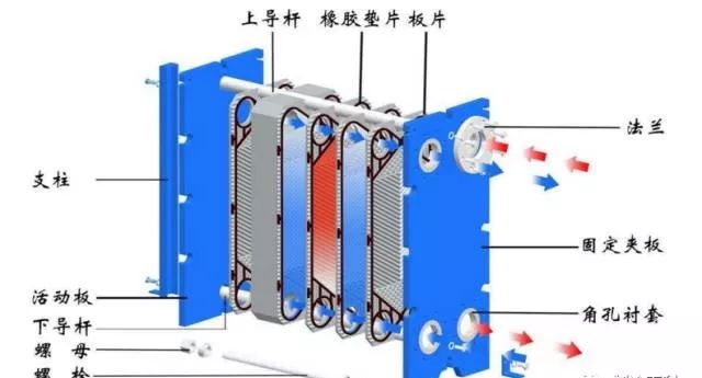 (干)式蒸发器壳管:蒸发器的制冷剂在管内流动,水在管簇外流动。制冷剂流动通常有几个流程,由于制冷剂液体的逐渐气化,通常越向上,其流程管数越多。为了增加水侧换热,在筒体传热管的外侧设有若干个折流板,使水多次横掠管簇流动。