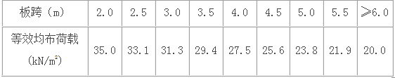 表1消防车轮压直接作用下双向板的等效均布荷载