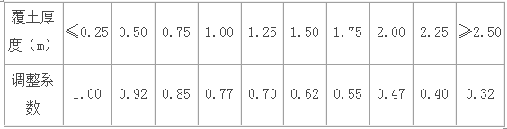 表2消防车轮压作用下,不同覆土厚度时的等效均布荷载调整系数