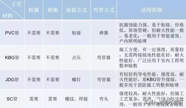 四种常用线管的对比总结