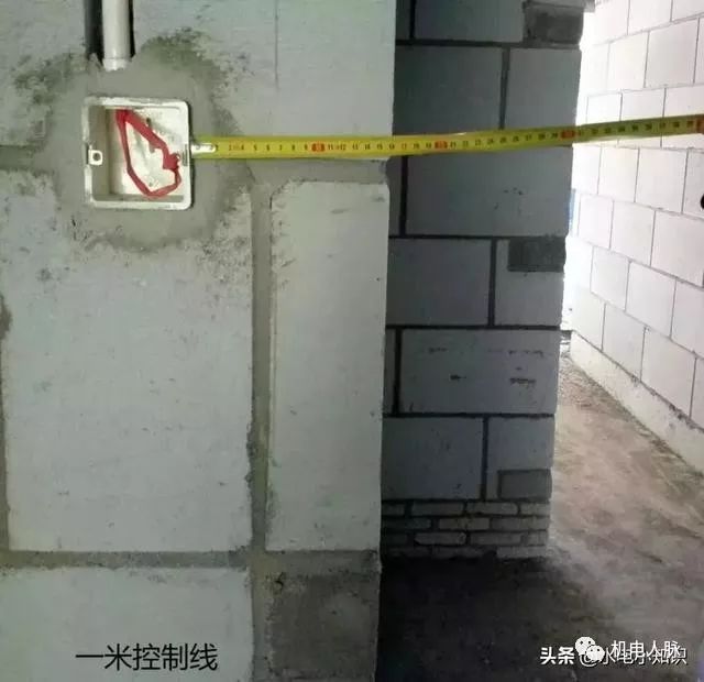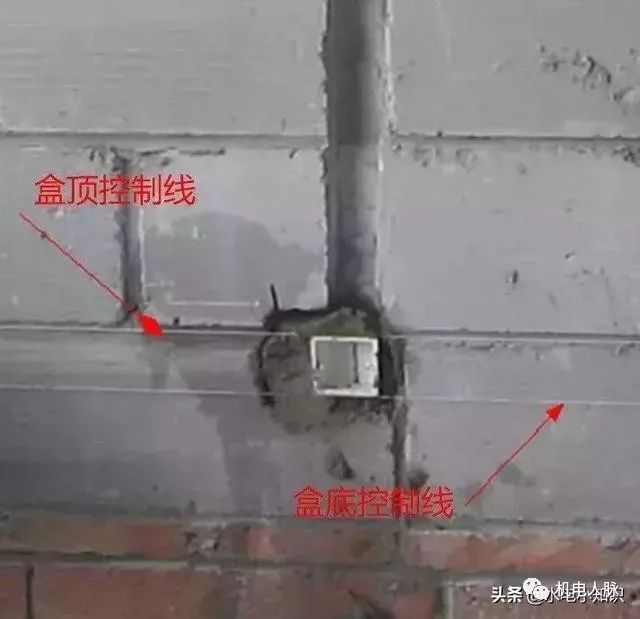 示范实例:混凝土结构中预埋时已土建定位控制点为基础精确定位线盒位置及高度,墙柱中线盒及配电箱只预留洞口,二次结构以土建1m线及灰饼为依据,箱盒表面超出抹灰面2mm为宜。