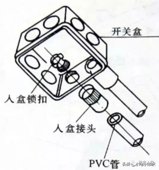 线管斜插入盒,未装锁扣