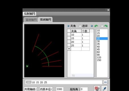 步骤三、创建弧线CAD轴网的设置步骤如下,我们需要调整个数和夹角参数,来通过设置我们得到自己所需要的轴网,生成轴网后,我们根据轴网来绘制自己的图形,起到一个方便的作用。