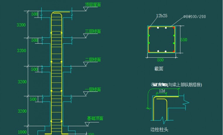 纵筋角筋截面b边中部筋和h边中部筋