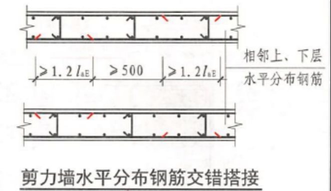 剪力墙50mm处应该是箍筋,箍筋与墙竖向钢筋搭接在底部加强层部位错开,其余部位可以全部落地搭接见16g101-1第73页,剪力墙水平筋、竖筋搭接长度均取1.2lae边缘钢筋搭接长度取1.4lae.